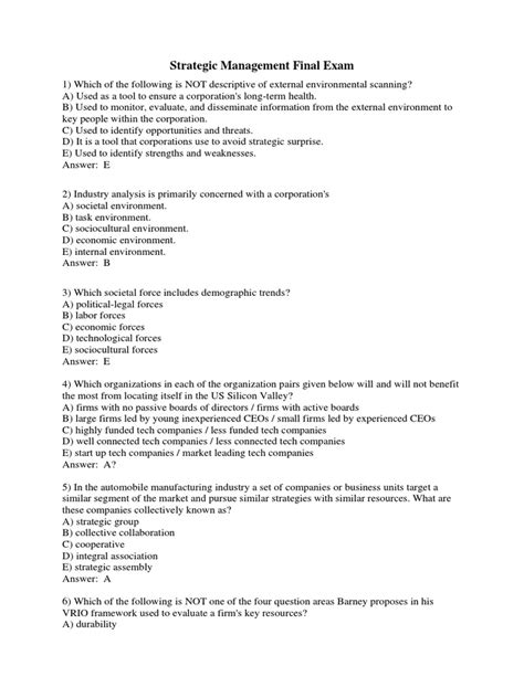 Read STRATEGIC MANAGEMENT FINAL EXAM Reader Gutenberg